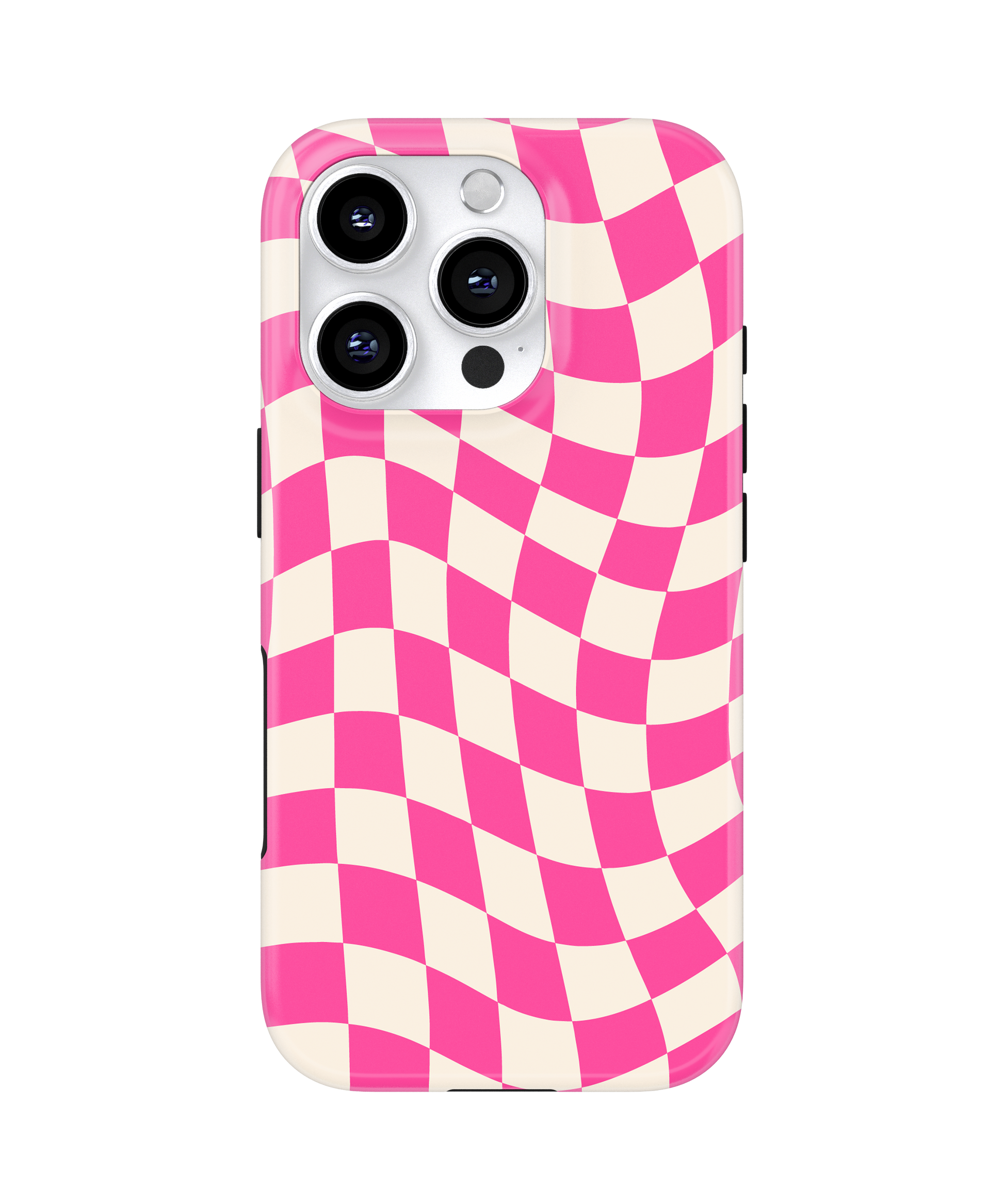 Introducing the It Girl Wavy Checkers II Phone Case – Update your phone with this hot pink and cream wavy checkers design by adding this one to your collection. 🩷