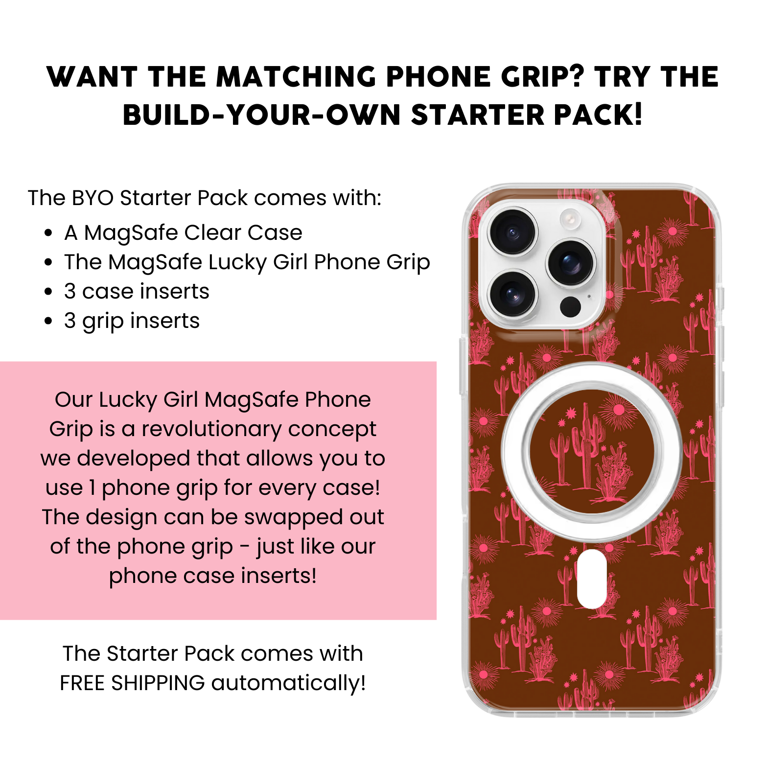 Introducing the Prickly Pink Clear Case Insert! Update your phone with this pretty western design by adding this cactus case insert to your collection. 🤎 You can even upgrade the finish of your insert for a customized look!
