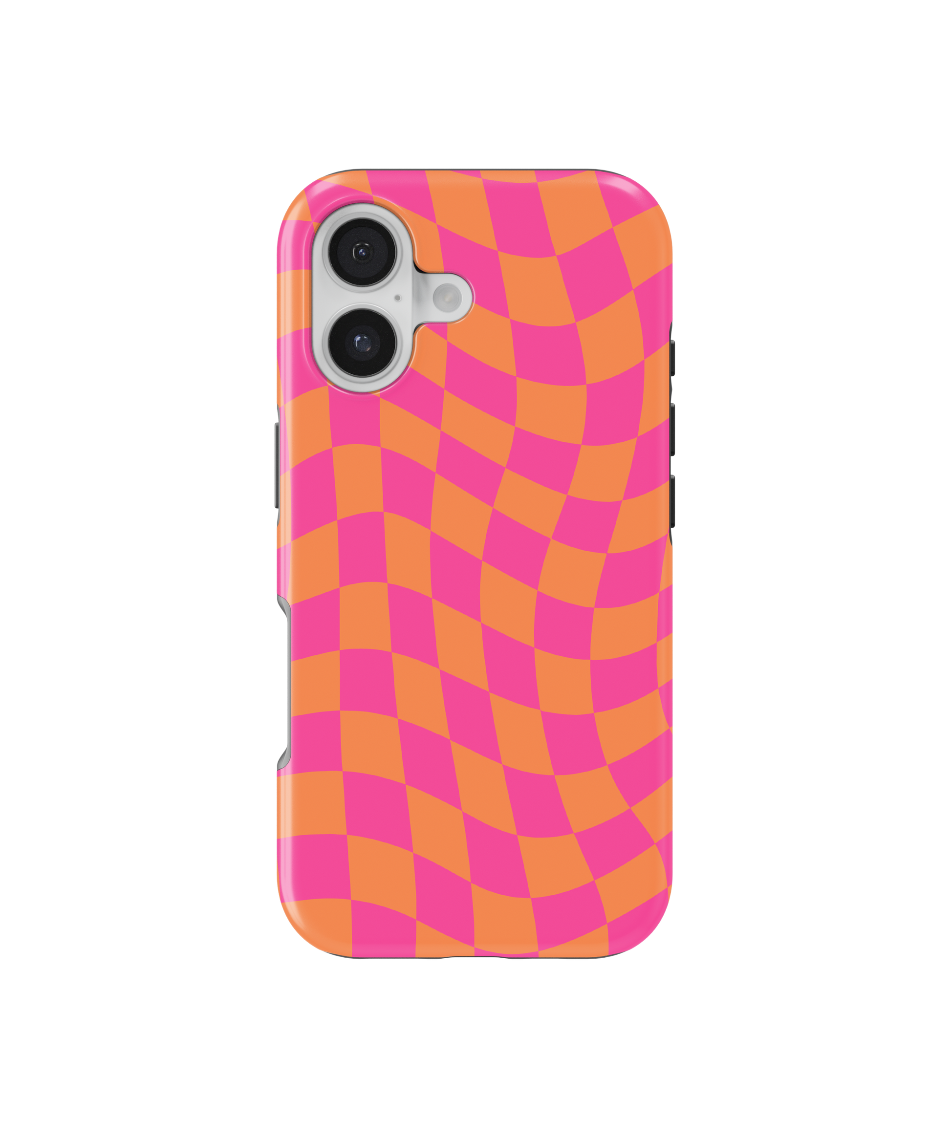 Introducing the Sunkissed Wavy Checkers Phone Case – Update your phone with this cute pink and orange wavy checkers design by adding this one to your collection. 🩷🧡