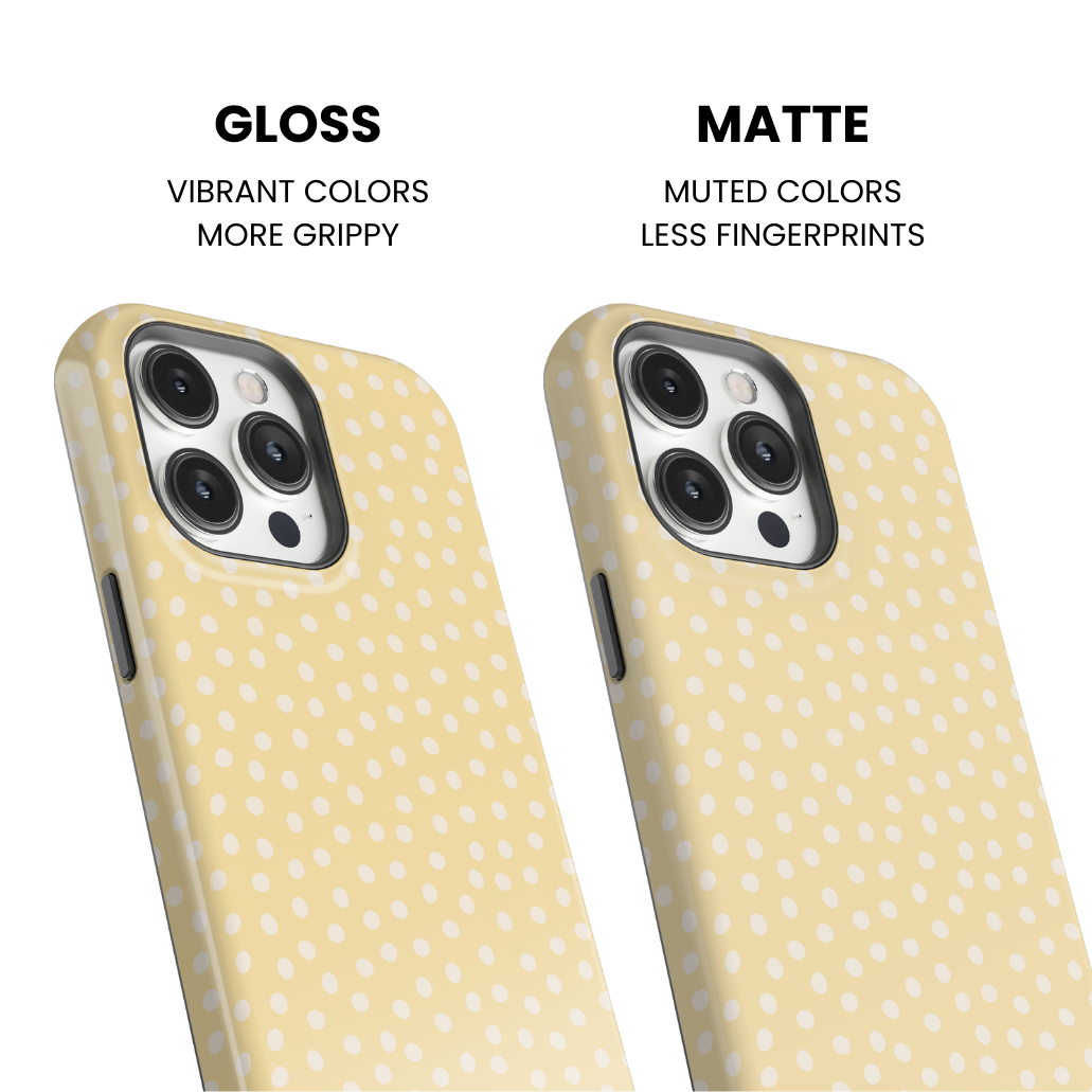 Introducing the Banana Whispers Dots Phone Case – Update your phone with this pastel yellow polka dot design by adding this one to your collection. 💛