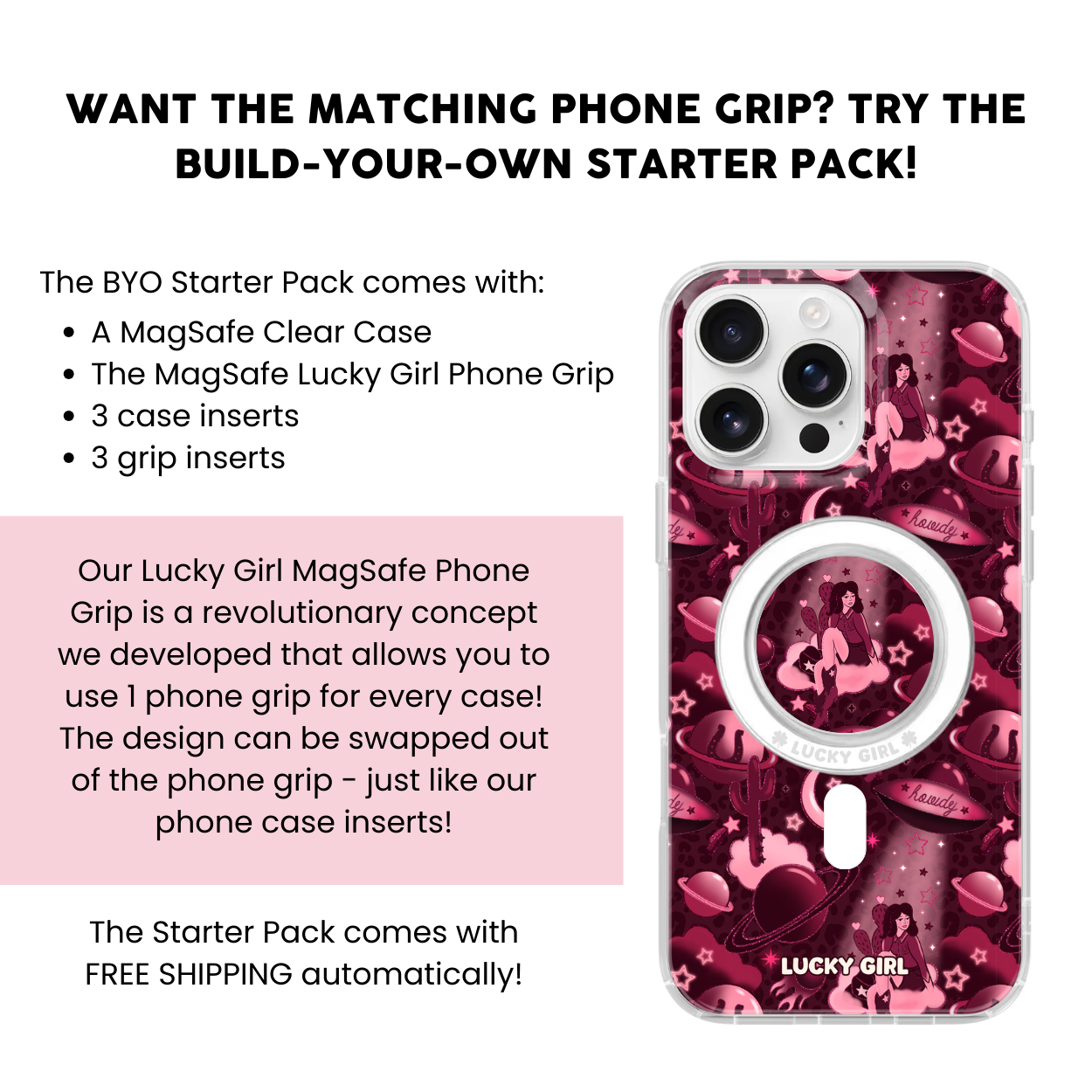 Need a Lucky Girl Phone Grip or a clear case? Check out our Cases and Grips Collection!