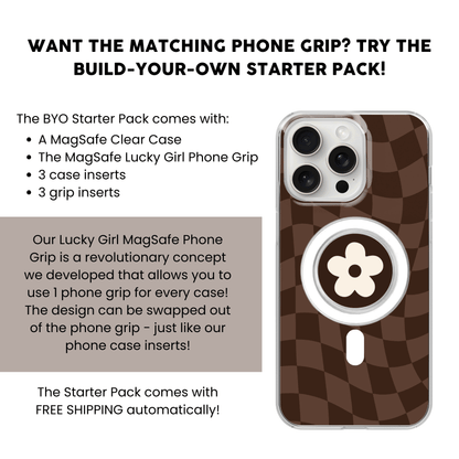 Introducing the Espresso Wavy Checkers Clear Case Insert! Update your phone with a classy, designer vibe by adding this neutral checkers pattern to your collection. 🤍 You can even upgrade the finish of your insert for a customized look!