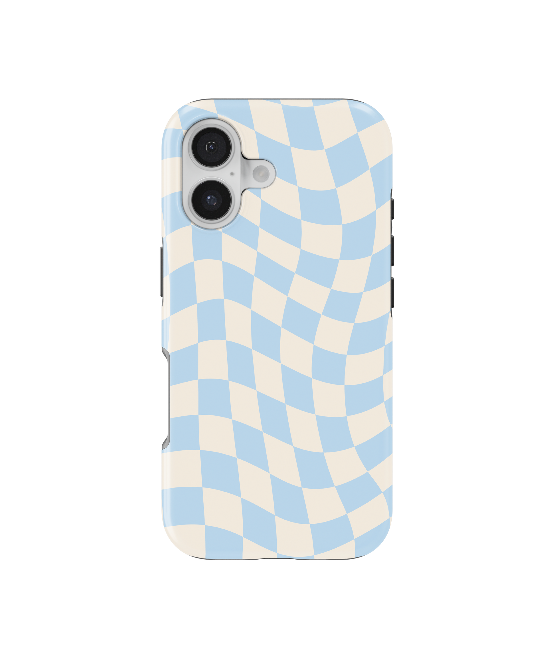 Introducing the Cloud 9 Wavy Checkers II Phone Case – Update your phone with this dreamy light blue and cream wavy checkers design by adding this one to your collection. 🩵
