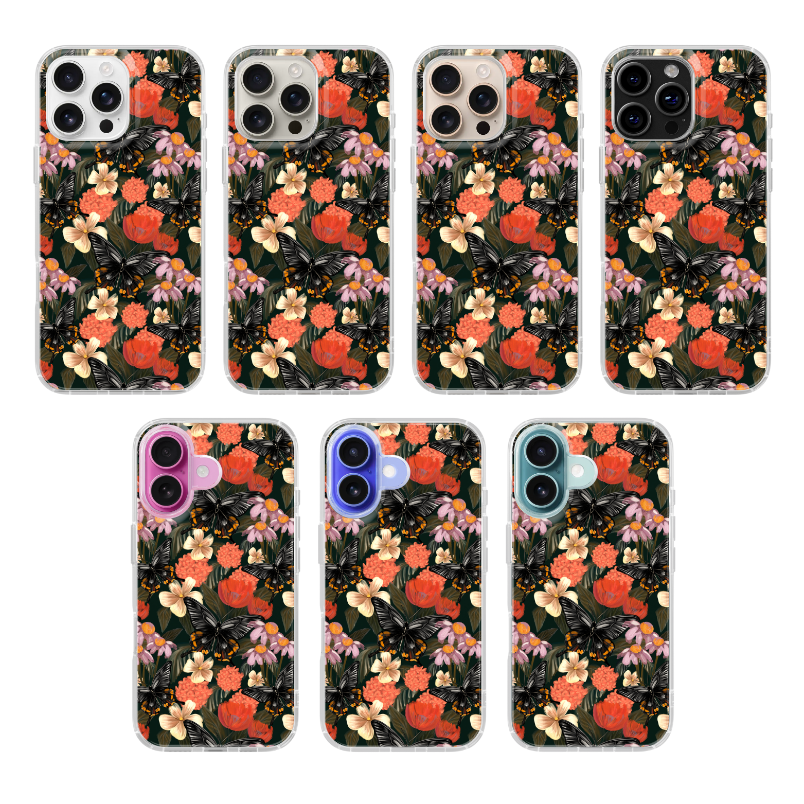 Introducing the Blackwing Clear Case Insert! Update your phone with this floral design by adding this moody butterfly insert to your collection! You can even upgrade the finish of your insert for a customized look!